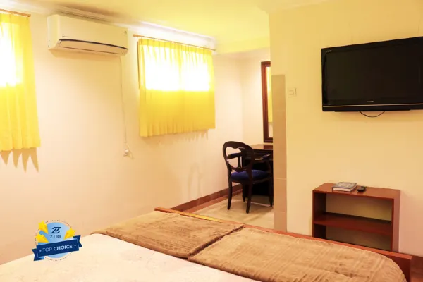 - AC, TV, Blackout Curtains, Free Bottled Water