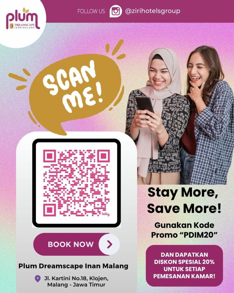 PLUM Dreamscape Inan Malang is a stylish and comfortable boutique hotel located in the heart of Malang, just minutes from Alun-Alun Tugu and Malang Train Station. Offering cozy rooms, free Wi-Fi, and a 24-hour outdoor pool, it’s a perfect stay for both leisure and business travelers.